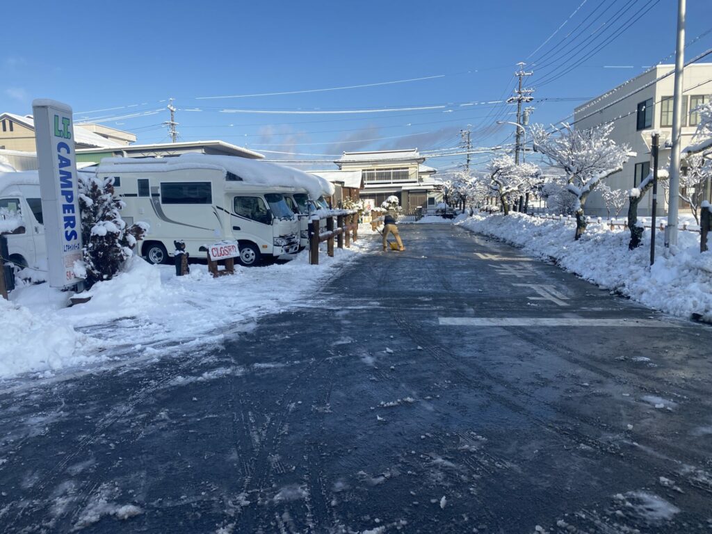 始業前に雪かき開始![]()
