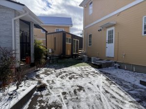昨日完成したトレーラーハウスの設置場所へ挨拶に行き