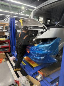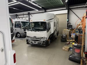 また、工場ではいろいろな改造車両やご納車整備をするほかに